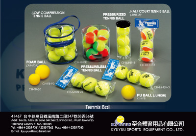 Products 1. PRESSURE TENNIS BALL¡BPRESSURELESS TENNIS BALL¡BLOW COMPRESSION BALL¡BSOFT BASEBALL.SOFT TENNIS BALL 2.JUMBO TENNIS BALL .GIANT TENNIS BALL.BIG TENNIS BALL 3.TENNIS TRAINER SET4.MINI KEYCHAIN: TENNIS BALL¡BBASKETBALL¡BSOCCER¡BBASEBALL.SQUASH 5.TOY 6.FOAM BALL.FOAM TENNIS BLL 7.WATERBOTTLE 8.RACQUET BALL / HIGH BOUNCE BALL 9.RUBBER BALL |